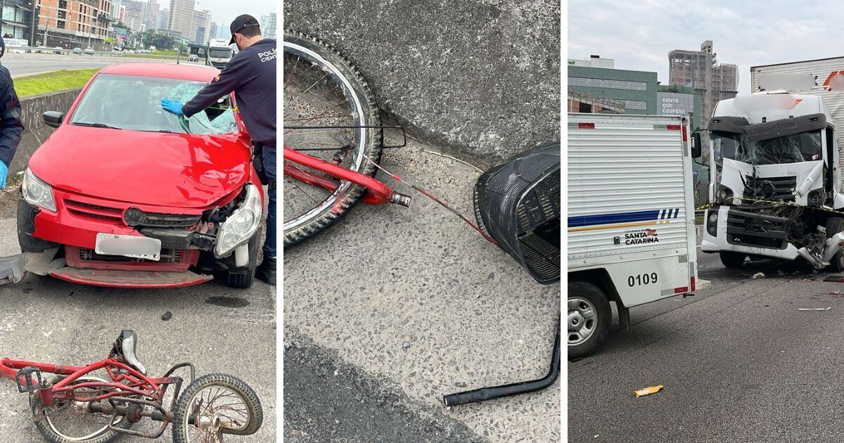 Ciclista morre na BR-101 e caminhão causa novo acidente ao tentar frear sobre o corpo em SC