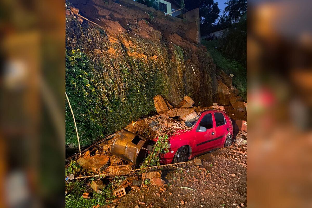 Um muro desabou sobre um veículo e causou prejuízos na madrugada desta sexta-feira (20), em Concórdia, no Meio-Oeste de Santa Catarina. O município registrou 60 mm de chuva nas últimas 24 horas, segundo dados da Defesa Civil.