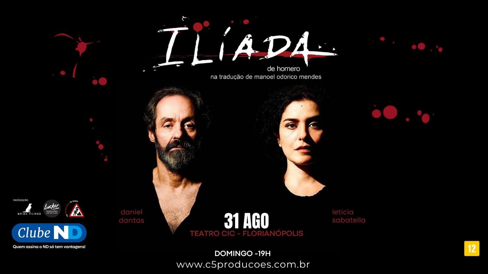 O espetáculo Ilíada, de Homero, chega ao palco do Teatro Ademir Rosa, no CIC, para uma única apresentação no domingo, dia 31 de agosto, às 19h. A montagem teatral do clássico homérico conta com a aclamada tradução de Manoel Odorico Mendes e direção de Octavio Camargo. A boa notícia é que assinantes do Clube ND têm 50% de desconto no ingresso. Aproveite!