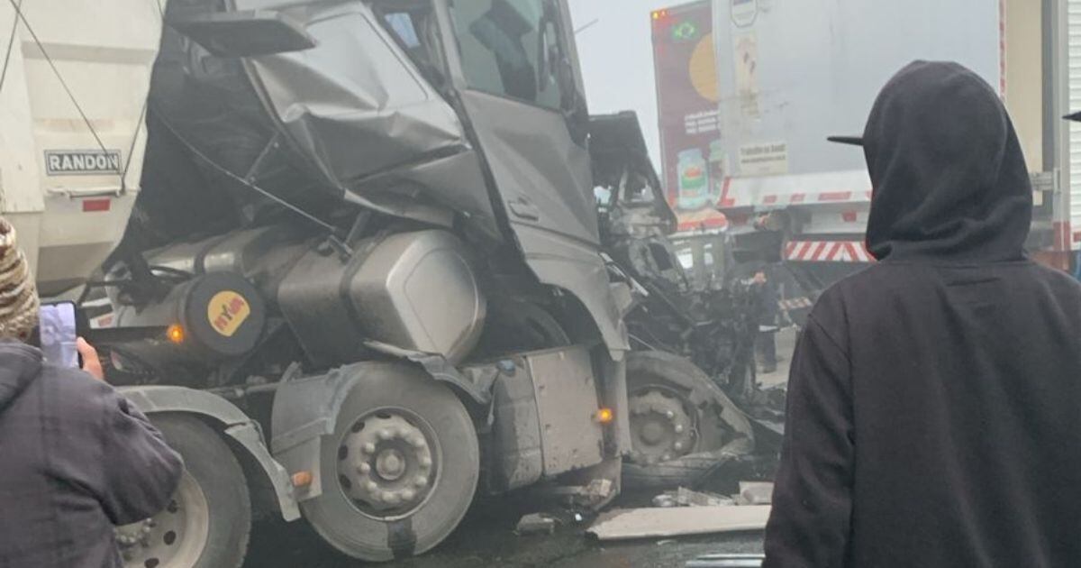 Fotos e vídeos mostram a destruição causada por um engavetamento na BR-101, em Sangão, no Sul de Santa Catarina, na manhã desta terça-feira (15). Segundo a ViaCosteira, que administra o trecho da rodovia federal na região, 12 veículos se envolveram no acidente.