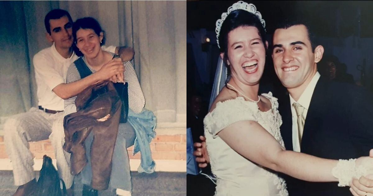 Mais do que palco para coreografias, o Festival de Dança de Joinville, considerado o maior do mundo pelo Guinness Book, também pode ser o cenário perfeito para uma história de amor. Foi durante a edição de 1993, há exatos 31 anos, que Juan e Karime se encontraram pela primeira vez e nunca mais se separaram. “Estamos casados há 27 anos”, conta Juan De La Cruz Trincado Hevia Junior. Ele fazia aulas de jazz, e Karime Gonzaga Espindola Luz Trincado Hevia, de sapateado, em um antigo estúdio próximo ao Colégio Santos Anjos. Mesmo frequentando o mesmo ambiente, os dois ainda não se conheciam. “Acredite ou não, treinávamos no mesmo lugar. Ela fazia balé com a minha irmã e jazz. Às vezes treinava até no mesmo horário”.