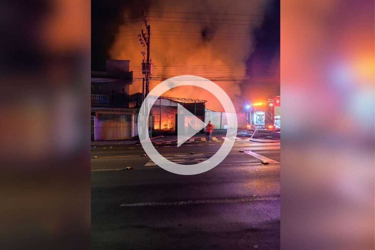 Um incêndio de grades proporções em um depósito mobilizou o Corpo de Bombeiros Voluntários de Concórdia, no Oeste de Santa Catarina, durante a madrugada de sexta-feira (7).