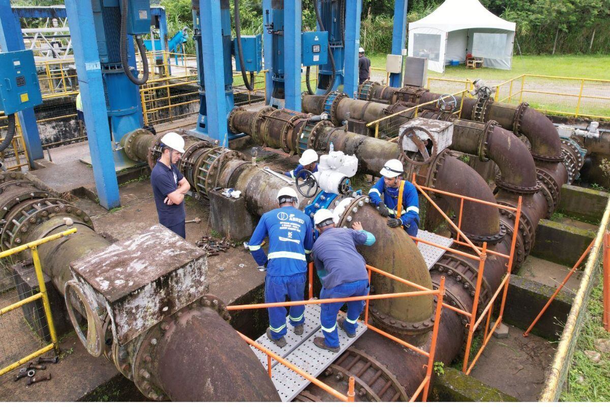 Vídeo mostra bastidores das obras na ETA Cubatão, que incluem instalação de válvulas, bombas e nova subestação