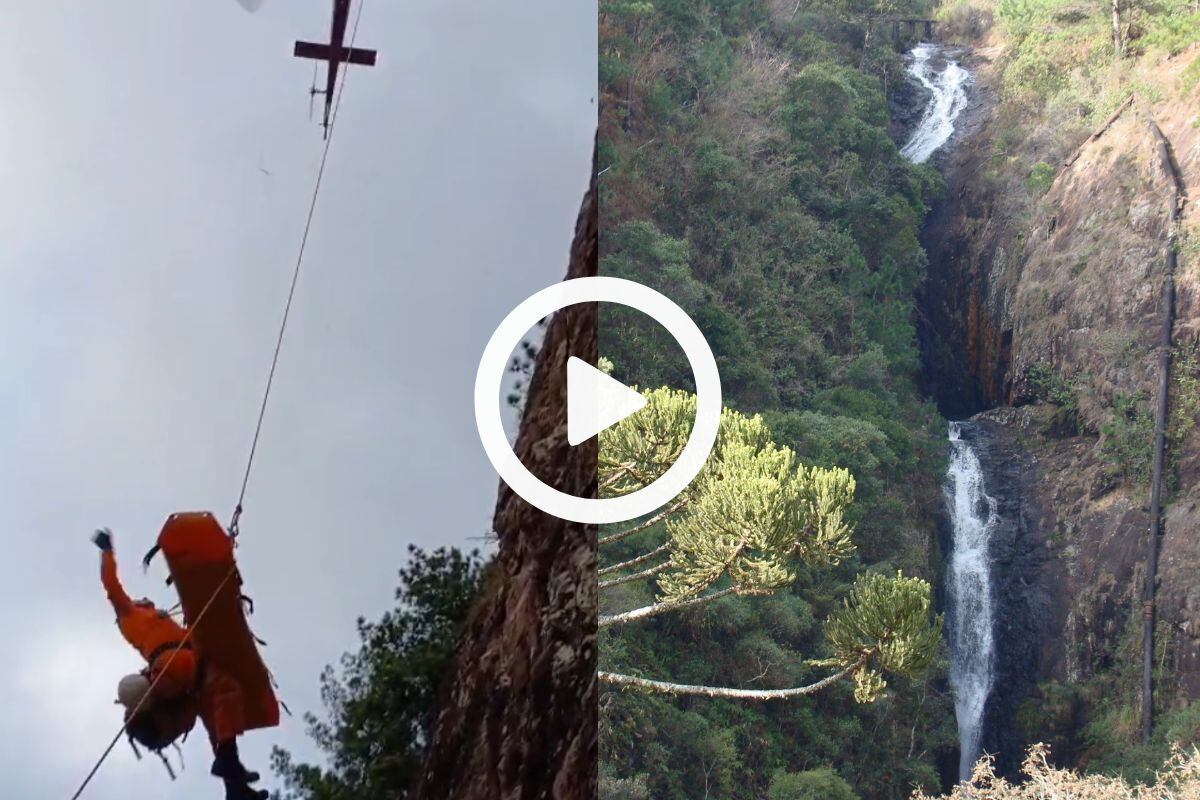 Uma mulher de 52 anos precisou ser resgatada depois de cair enquanto praticava rapel na Cascata Paraíso, próxima ao centro de Campo...