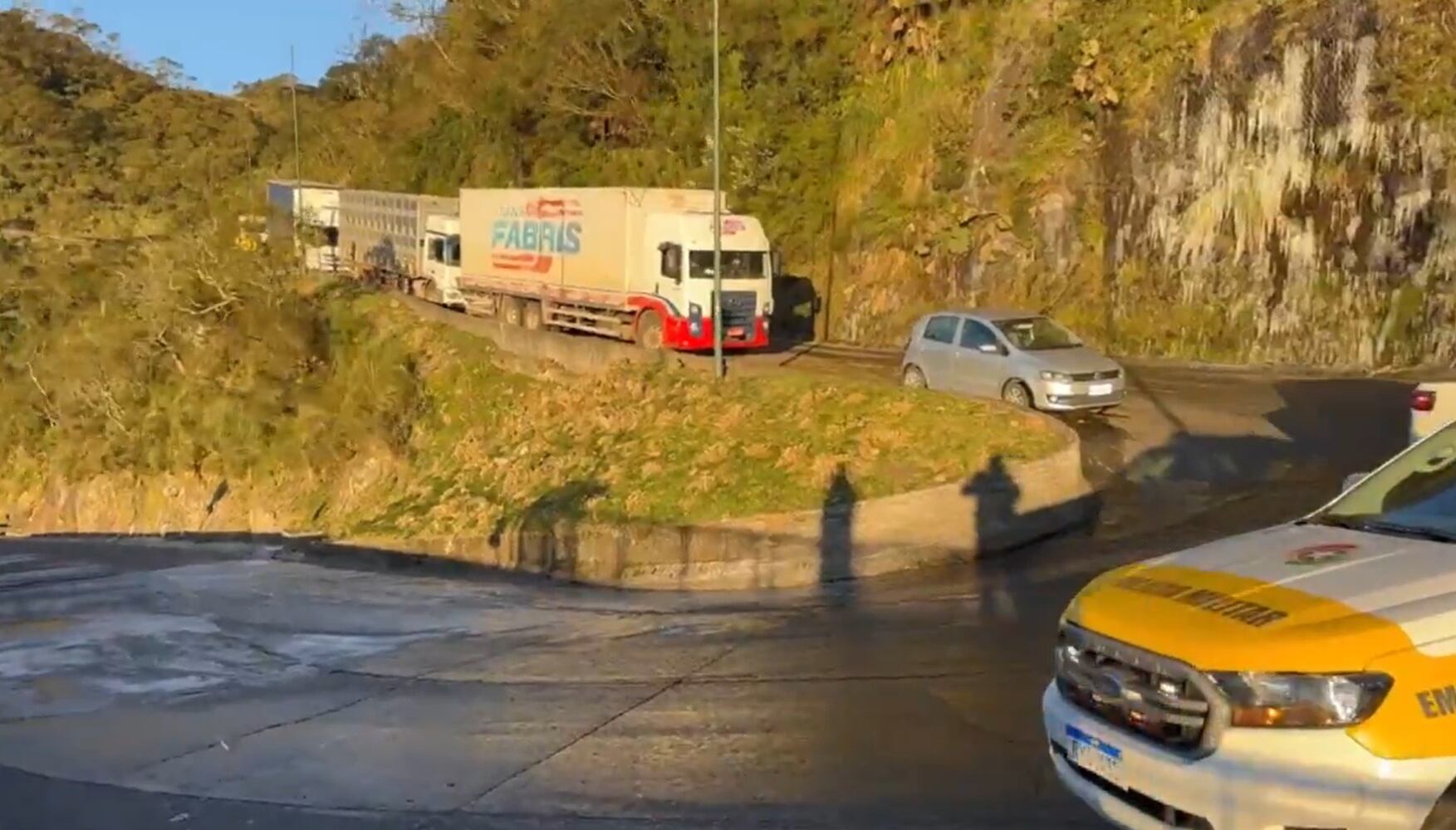 Serra do Rio do Rastro tem meia pista liberada para carros, mas segue bloqueada para caminhões