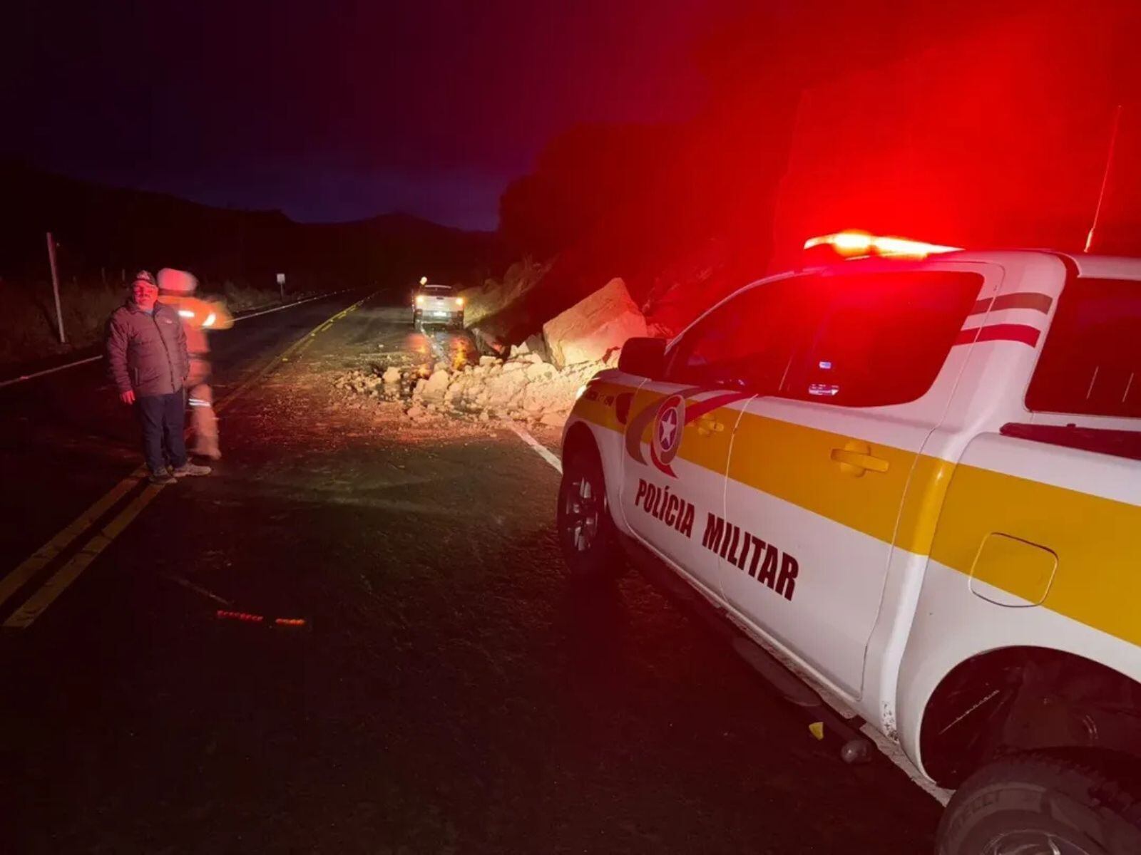 Veja como está o trânsito na SC-110, em São Joaquim, após queda de barreira interditar pista