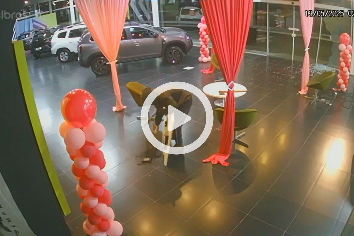 Câmeras de segurança flagraram a ação de dois homens que invadiram uma concessionária em Canoinhas, no Norte de Santa Catarina, na madrugada dessa terça-feira (13), por volta das 2h30. Nas imagens, os homens quebram o vidro da loja e levam duas televisões.