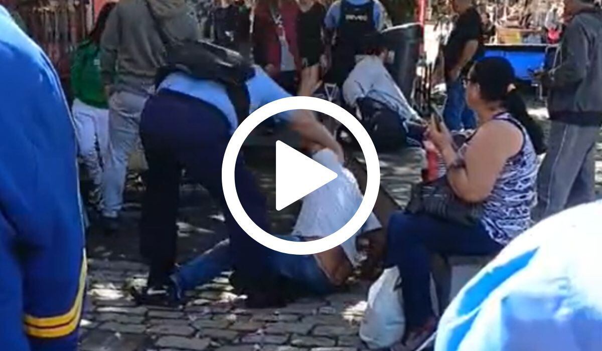 Uma cena de agressão no Mercado Público de Florianópolis pegou frequentadores de surpresa na tarde desta quinta-feira (21). Vídeos, registrados por testemunhas, mostram o momento que um homem em situação de rua é agredido por um dos guardas do local. Conforme as imagens, a vítima deixou o local sem atendimento médico.