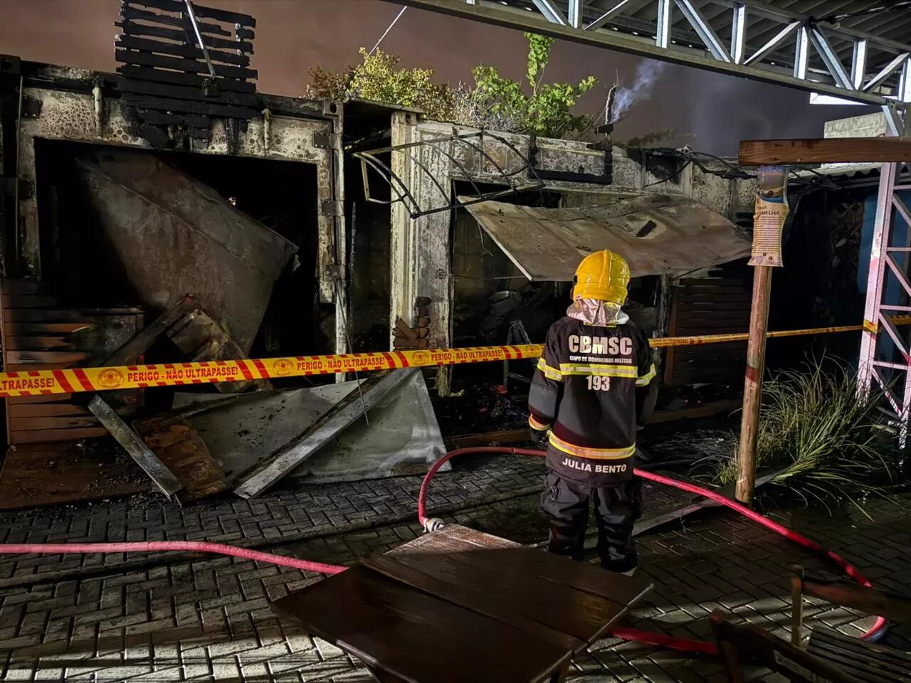 VÍDEO: Incêndio em food park de Penha destrói restaurante