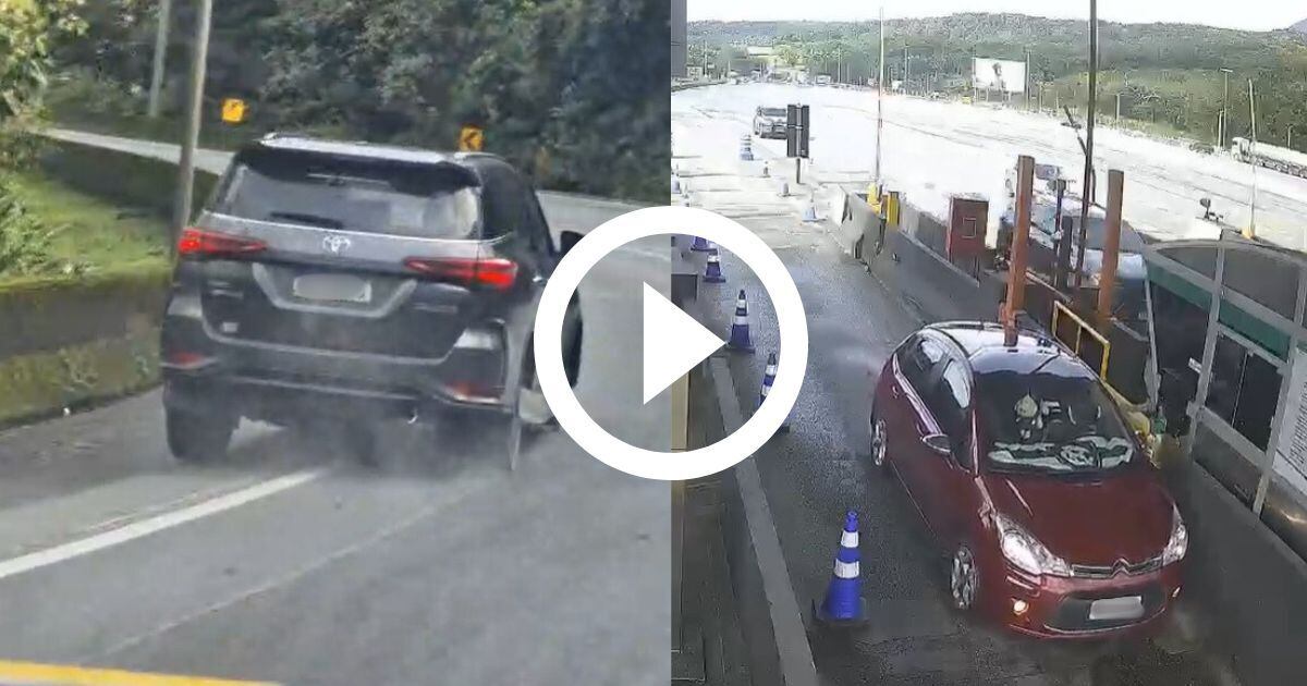 VÍDEO: Ladrão fura cancela de pedágio e foge com carro sem pneus na BR-376