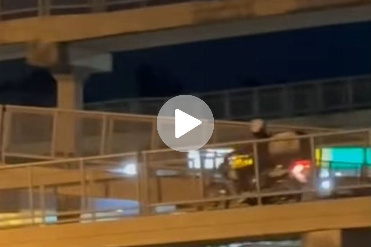 Um motociclista imprudente foi flagrado pela PMRv (Polícia Militar Rodoviária) andando na passarela destinada a pedestres em uma rodovia de Florianópolis, na noite de segunda-feira (13). O “atalho” é considerado uma infração gravíssima.