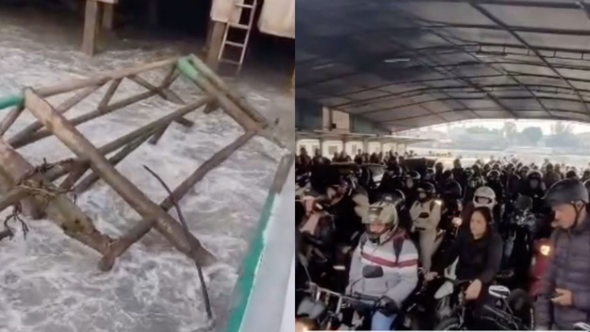 Na manhã desta sexta-feira (11), uma das embarcações de ferry boat que fazem a travessia entre Itajaí e Navegantes, no Litoral Norte, encalhou. Um vídeo que circula na internet mostra o momento do incidente. O ferry boat estava lotado de motoristas, motociclistas e pedestres. Com a intercorrência, as motos começaram a buzinar.