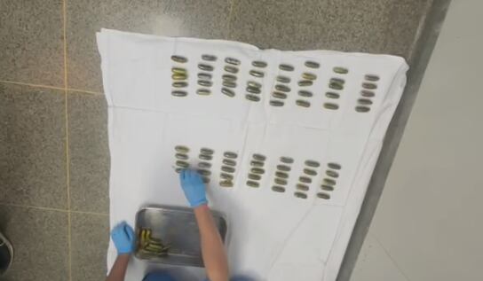 A equipe médica realizou a contagem das cápsulas, que totalizaram 84 unidades com aproximadamente 800 gramas de cocaína.