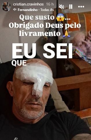 Em um post numa rede social, Cravinhos escreveu: “Que susto [emoji]... Obrigado Deus pelo livramento”. A mensagem tem, ao fundo, a música ‘Todas as Coisas’, do cantor Fernandinho.