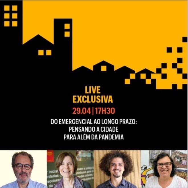 A Rede Nossa São Paulo e a Fundação Tide Setúbal - ONG que promove iniciativas para o desenvolvimento sustentável nas periferias urbanas - realizam, nesta quarta-feira (29), a partir das 17h30, a live "Do emergencial ao longo prazo: pensando a cidade para além da pandemia", com o objetivo de discutir a situação da covid-19, ofertas de leitos hospitalares, banda larga, renda, habitação, transporte, violência e qualidade de vida na capital paulista.