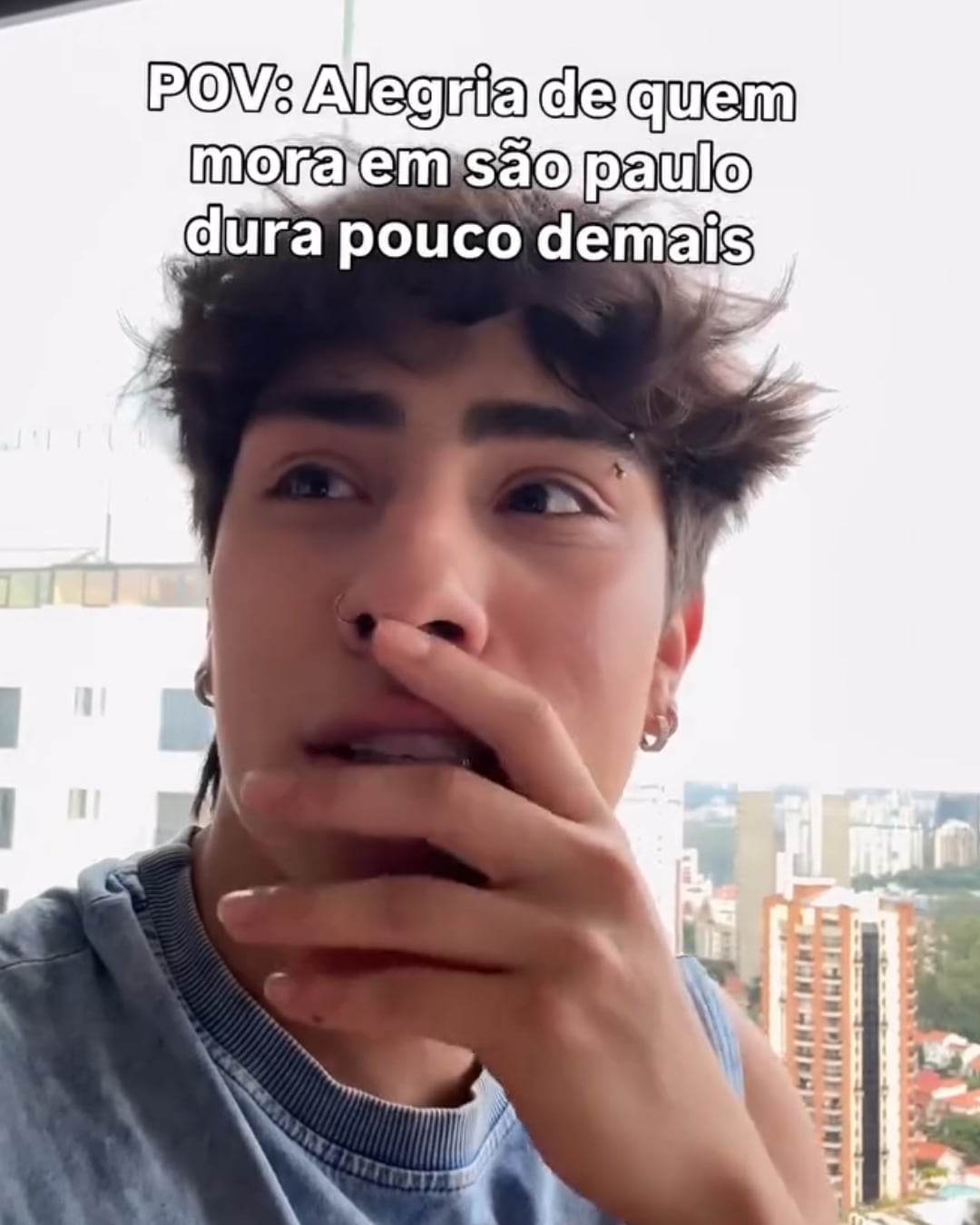 “A felicidade dura pouco”, diz ele no vídeo, com tom de brincadeira. “Estou rindo de desespero”, afirma em seguida.
