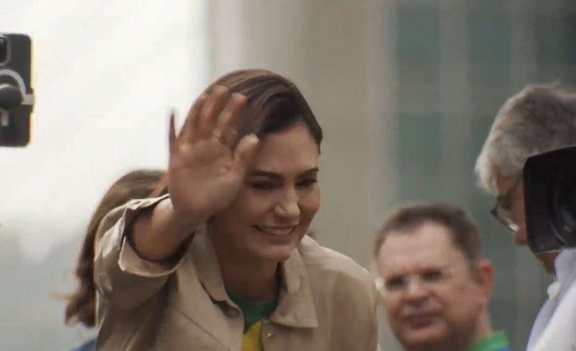 Sobre Bolsonaro, Michelle disse que ele “está humilhado e preso por enfrentar o sistema por amor ao povo”. O ex-presidente cumpre prisão domiciliar em Brasília. “Ele daria tudo para estar aqui sentindo o carinho de vocês por ele. Hoje está humilhado e preso porque enfrentou o sistema por amor ao povo. Querem destruí-lo para poder gritar novamente: ‘Nós acabamos com o bolsonarismo’. Mas não conseguirão.”