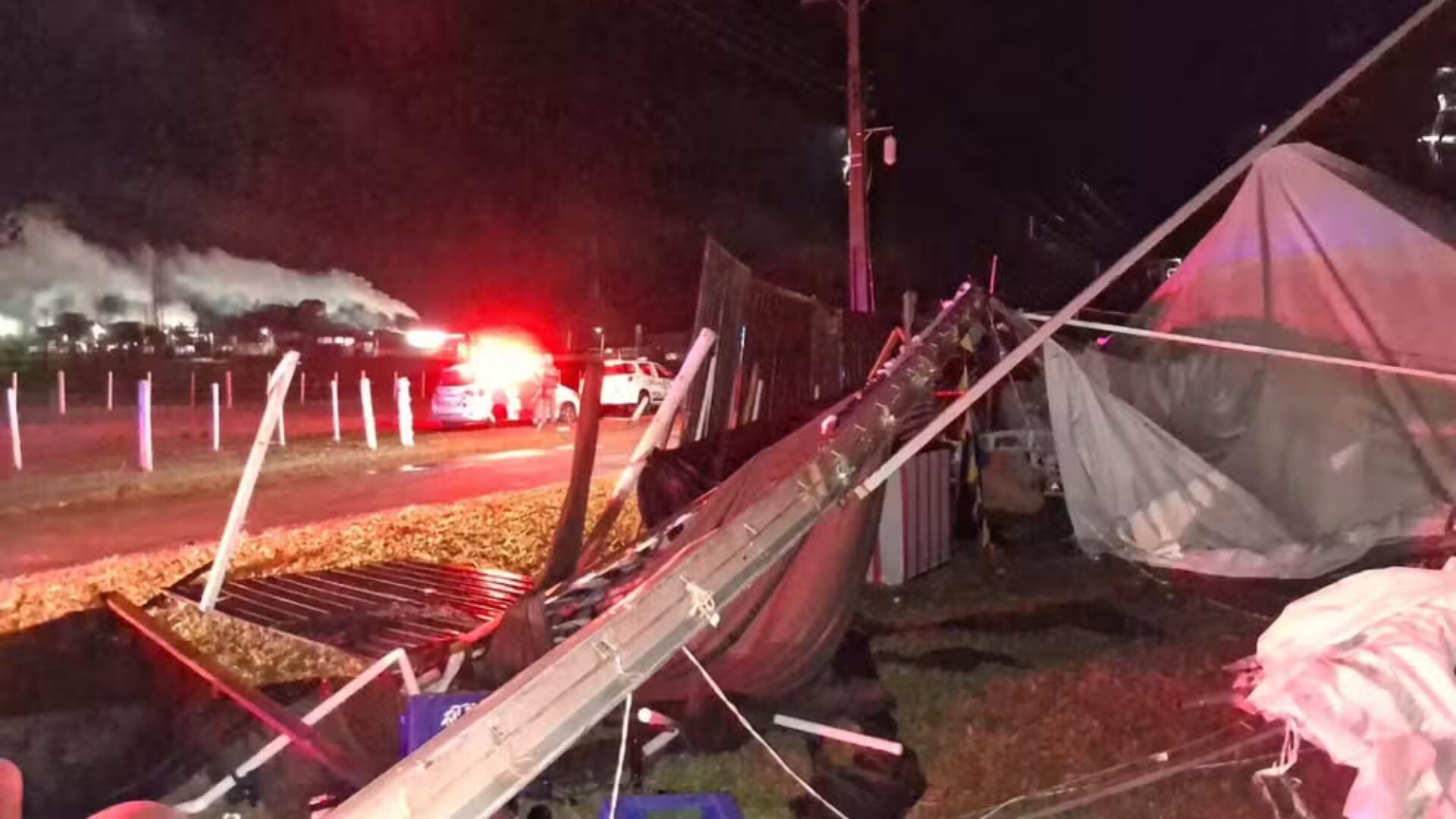 Ventos de 95 km/h derrubam estrutura de festa universitária no interior de SP; um homem morreu